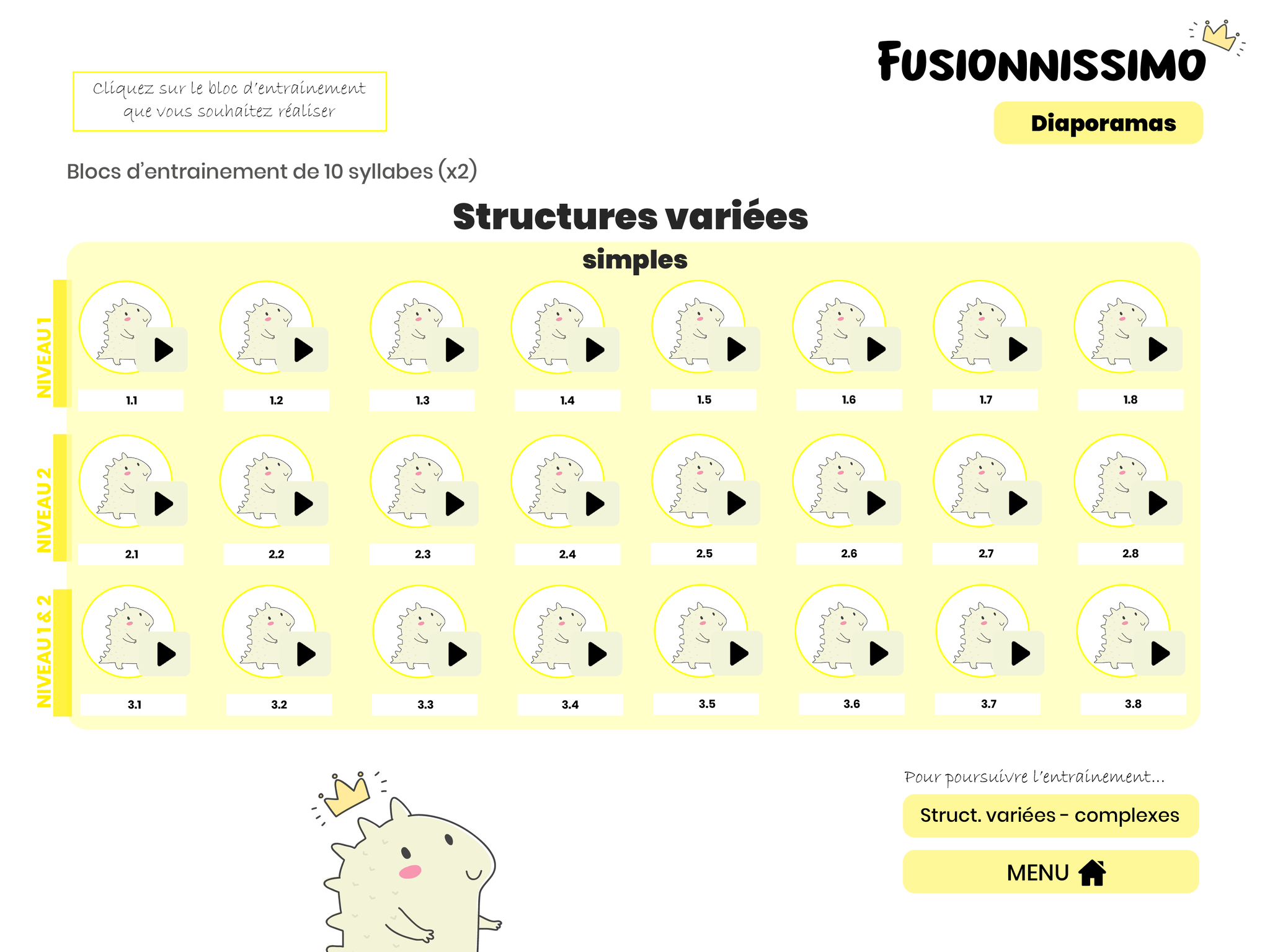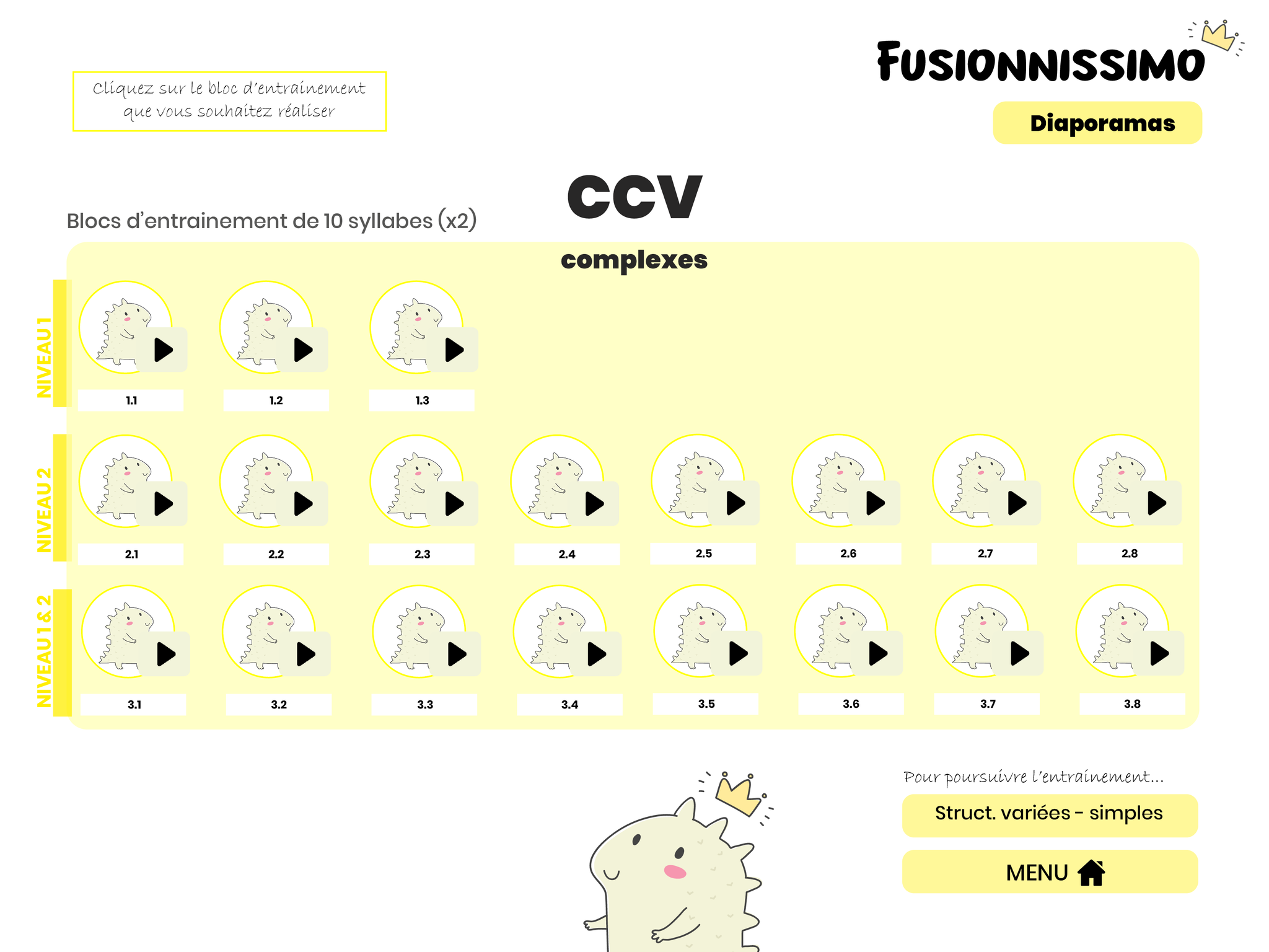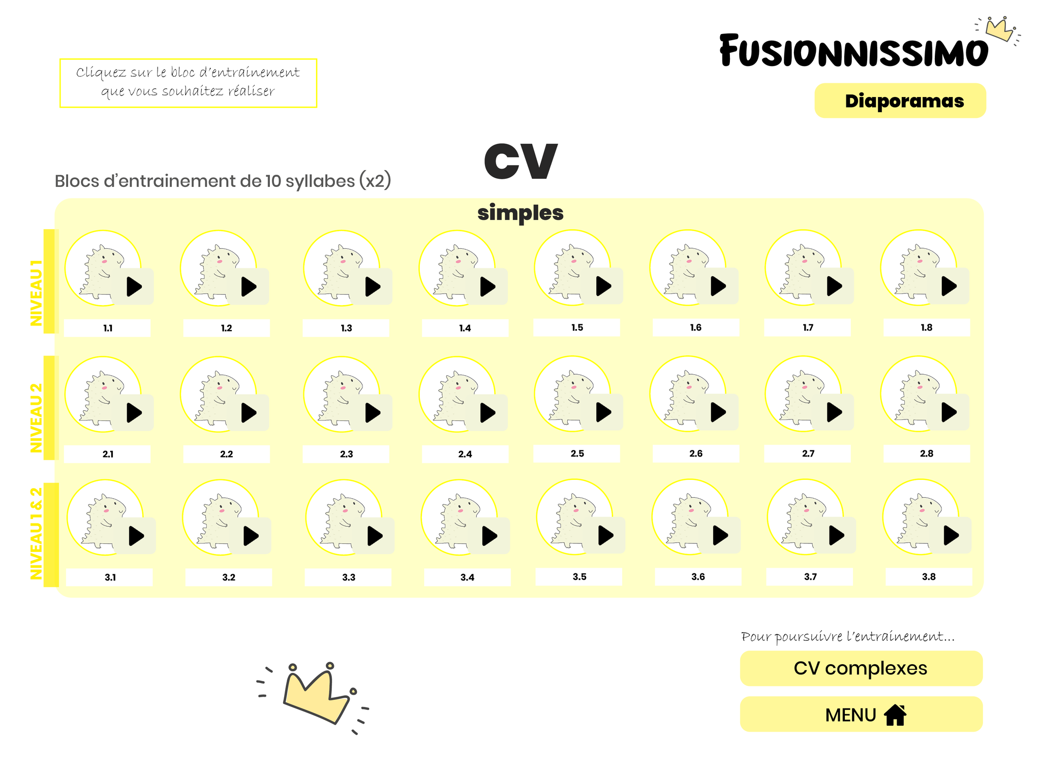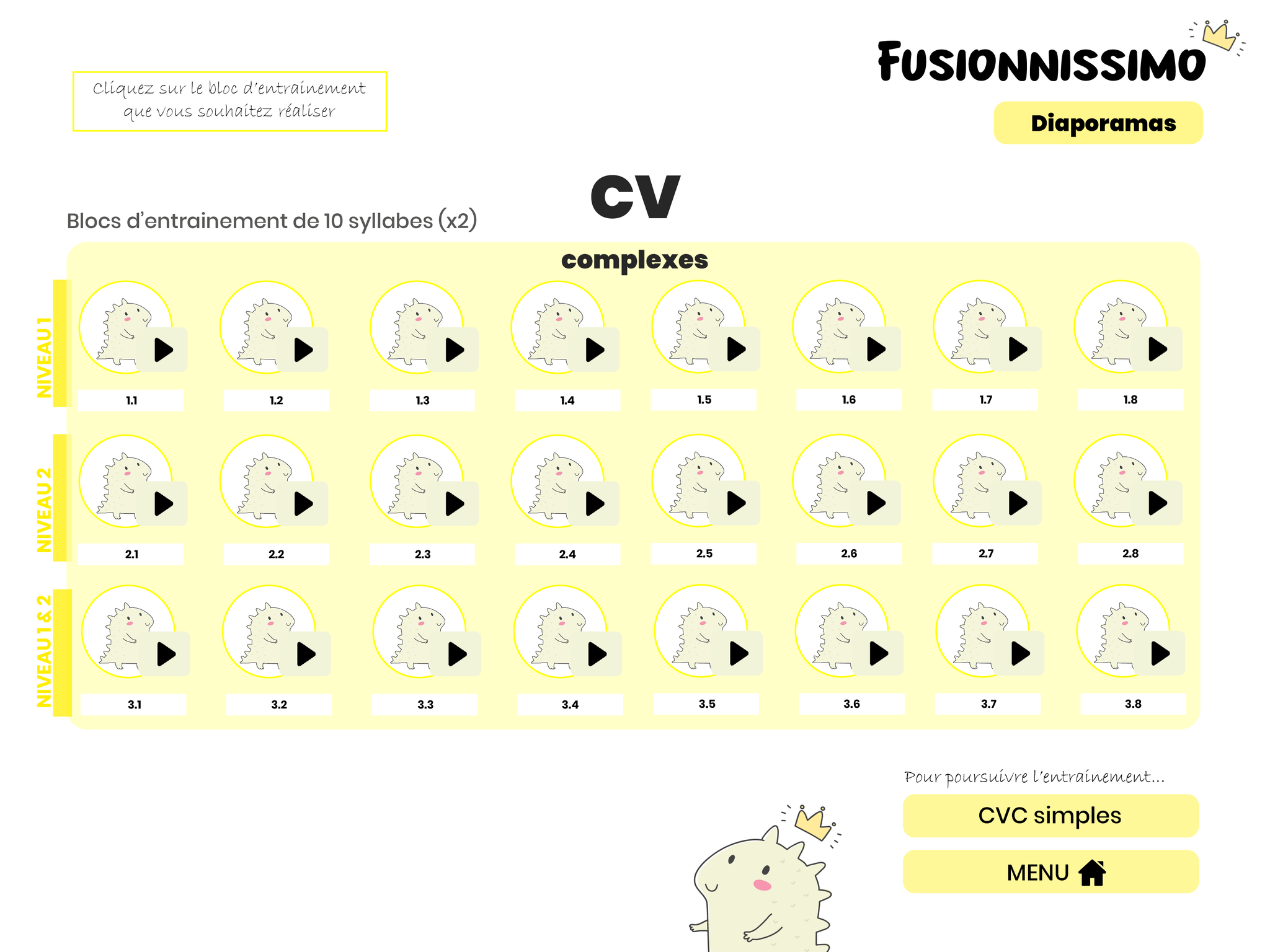 Jeu d’entrainement à la fusion phonémique et à la lecture de syllabes simples et complexes.